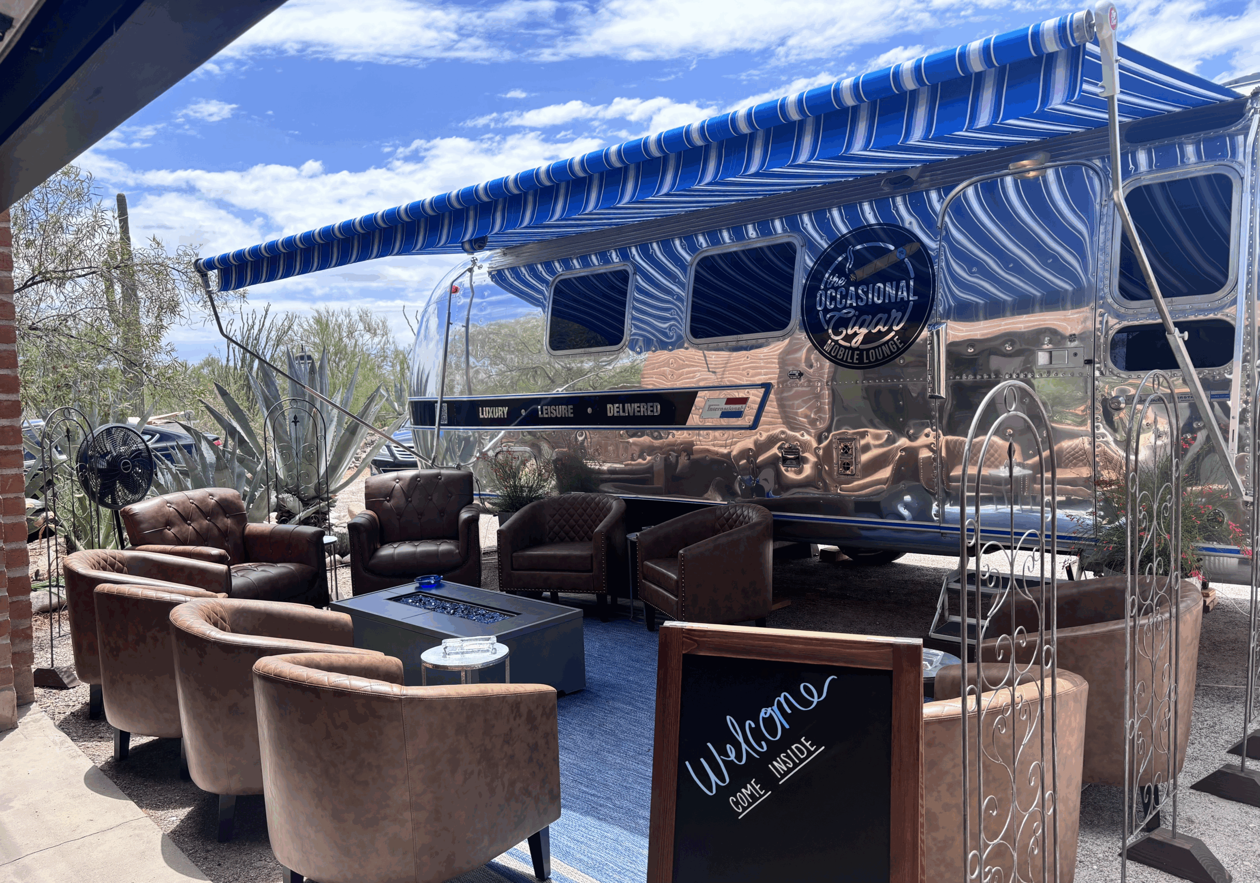 The Occasional Cigar Mobile Lounge features a custom humidor stocked with hundreds of cigars from premium brands, lounge style seating, with plush leather chairs, handcrafted couches, soft ambient lighting, and much more.