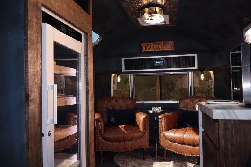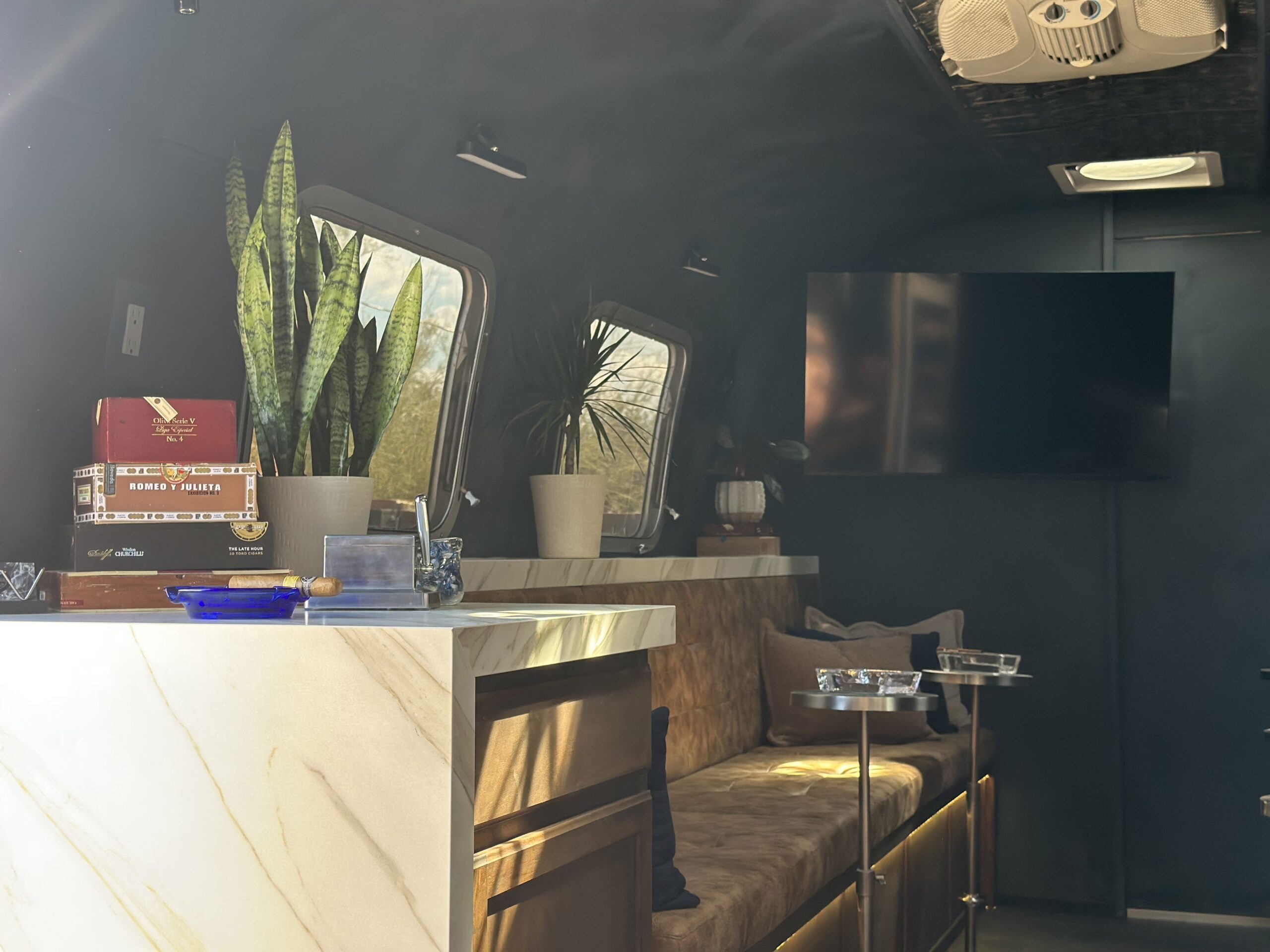 Step inside the timeless elegance of our fully retrofitted 1972 Airstream, transformed into a vintage Mobile Cigar Lounge – a one-of-a-kind experience that brings the sophistication of a cigar lounge to your doorstep.